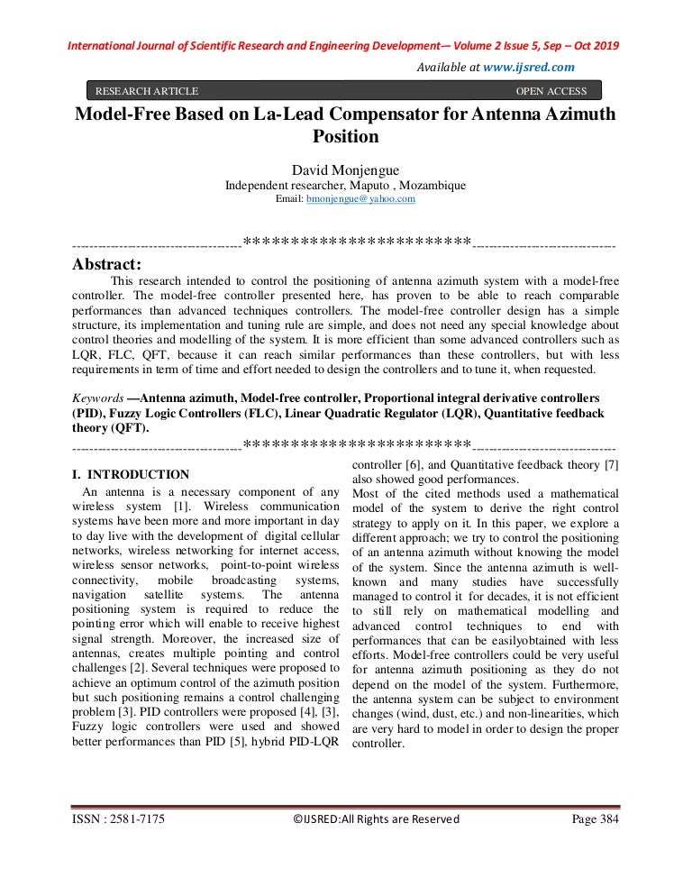 RADIO TELESCOPE ANTENNA AZIMUTH POSITION CONTROL SYSTEM DESIGN AND ANALYSIS IN MATLAB/SIMULINK USING PID & LQR CONTROLLER - PDF Free Download